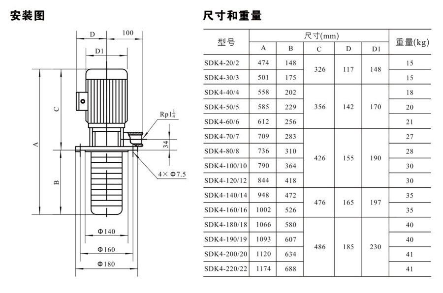 SDK4/SDKT4為配用標(biāo)準(zhǔn)電機(jī)的非自吸立式多級離心泵,電機(jī)軸和泵軸用聯(lián)軸器直接聯(lián)接的結(jié)構(gòu)。為滿足水槽或容器的安裝深度,可安裝空套的腔體來改變泵本身的侵入 深度。