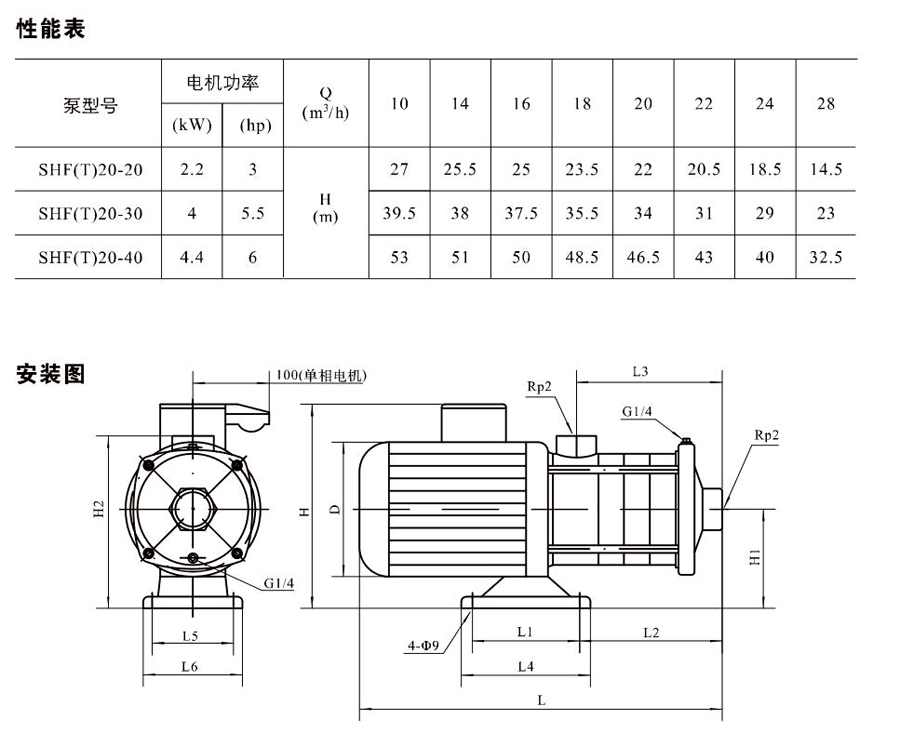 SHL/SHF/SHFT20為臥式多級非自吸多級離心泵,配加長軸電機。緊湊式結(jié)構(gòu)使泵尺寸很小,軸向入口或徑向出口。